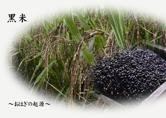 黒米は、中国・漢の時代に発見され、以来歴代の皇帝が不老長寿の米として食したとされる貴重な米です。赤米と同じく2400年前に黒米も伝来されました。おはぎの起源とも言われています。黒米は、滋養強壮、胃腸を丈夫にし、更に増血作用があるとされ、増血米、黒薬米と称され薬膳の1品として味わったとされます。