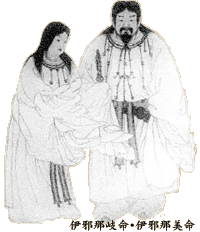 天地開闢とともに様々な神が生まれ、その最後に伊邪那岐命(イザナギノミコト)、伊邪那美命(イザナミノミコト)が生まれた。ニ神は高天原(タカマガハラ)(天)から葦原中津国(地上世界)に降り、日本列島(北海道や南西諸島は除く)を産み、ついで山の神、海の神などの神々を産んだ。こうした国産みの途中、イザナミは火の神を産んだため、火傷を負い死んでしまい、出雲と伯支の国境、比婆山(現;島根県安来市)に埋葬された。イザナギはイザナミを恋しがり、黄泉の国を訪れ連れ戻そうとするが、結局ニ神は喧嘩してしまい、連れ戻すことに失敗し、国産みは未完成のまま終わってしまう。