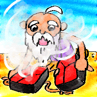 もらった玉手箱を手に、太郎は元住んでいた浜にたどり着きますが、様子がすっかり変わってしまっています。どうしたらよいかわからなくなってしまい、箱を開けてみることにしました。すると白いけむりが出てきて、浦島はあっという間におじいさんになってしまいました。竜宮城で楽しく過ごしている間に、何百年も経ってしまっていたのでした。